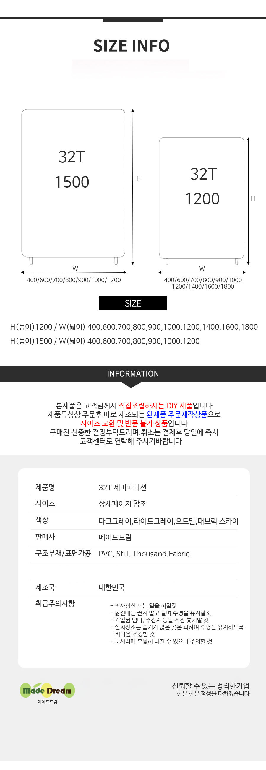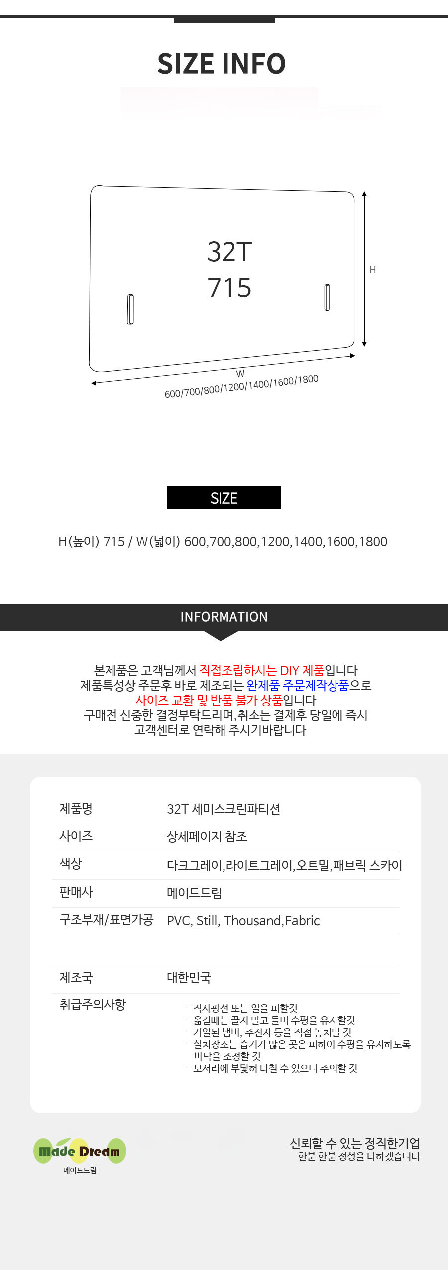 [MPO] 32T 세미파티션 스크린파티션 H1200 H715 W400 600 700 800 900 1000 1200 1400 1600 1800