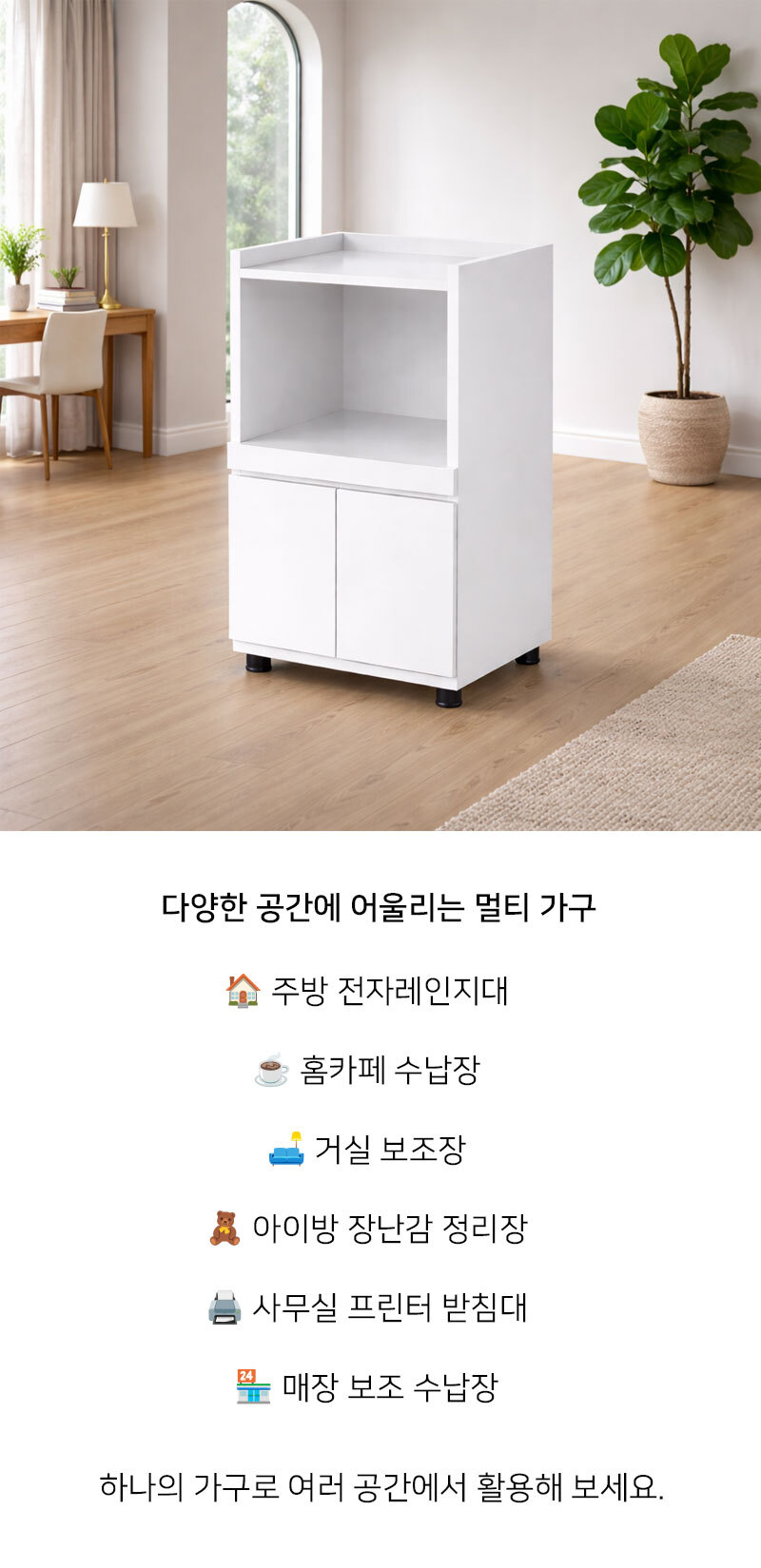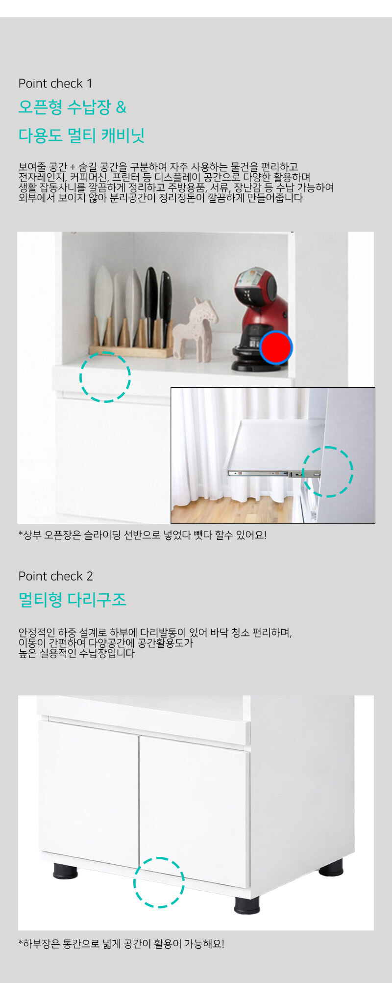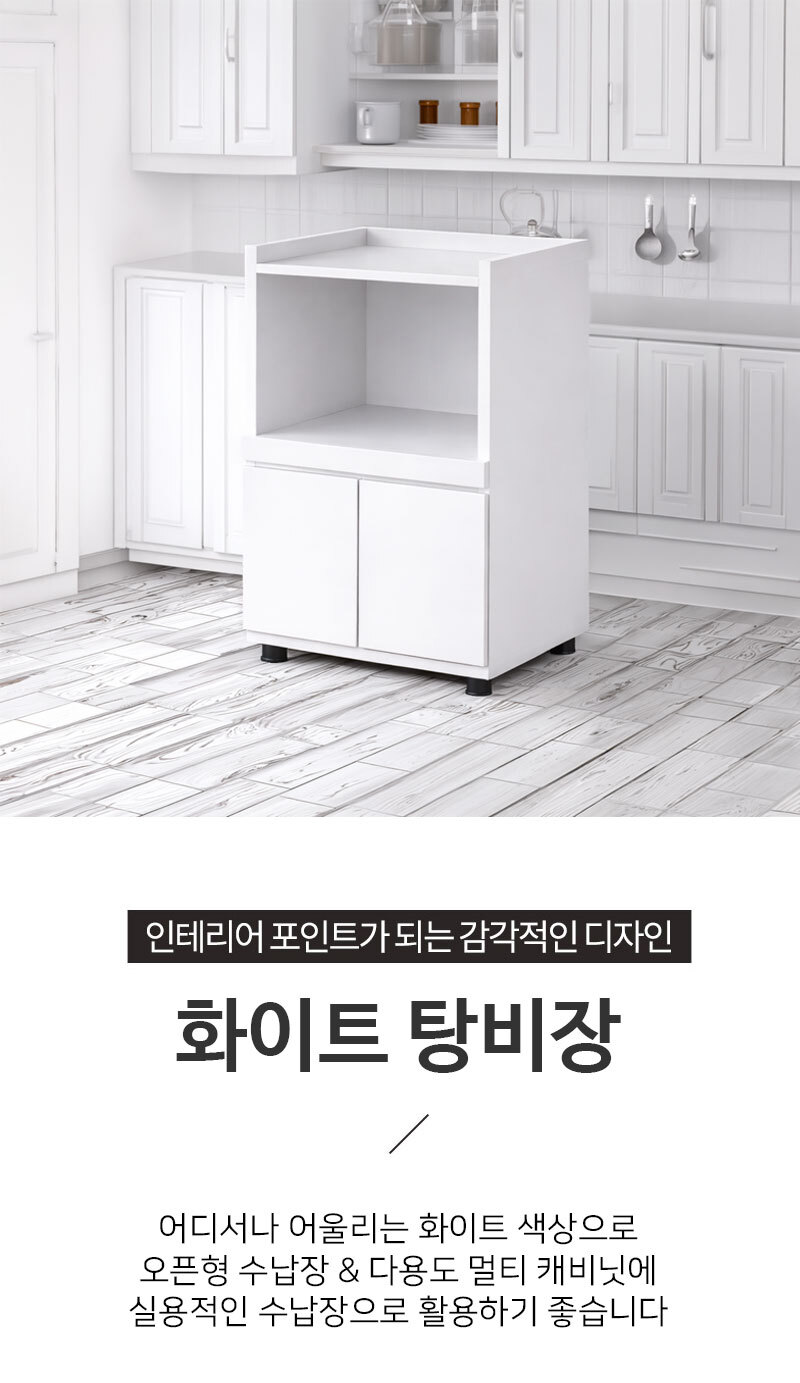 [MD] 모던 화이트 전자렌지 수납장 고급 오픈형 하부 양문 캐비닛 식기건조기 에어프라이기 다이 슬라이딩선반 탕비장